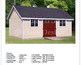 16 X 24 Backyard Storage Shed Plans Gable Roof Etsy